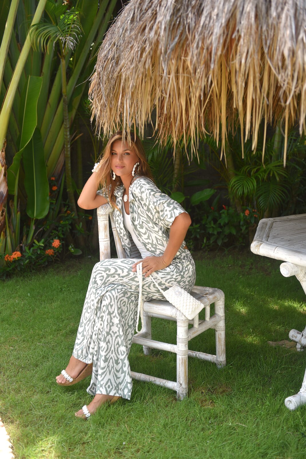 De Alex Etnic Sage pants is een toonbeeld van verfijnde bohemian stijl, waarbij een rustige kleurstelling samenkomt met een gedetailleerd design. Deze prachtige broek is uitgevoerd in een subtiele lichtgrijze tint met een unieke etnische print die voor een exclusieve uitstraling zorgt. Het model is ontworpen met zwierige pijpen en een comfortabele, brede elastische tailleband die uw silhouet op elegante wijze flatteert.